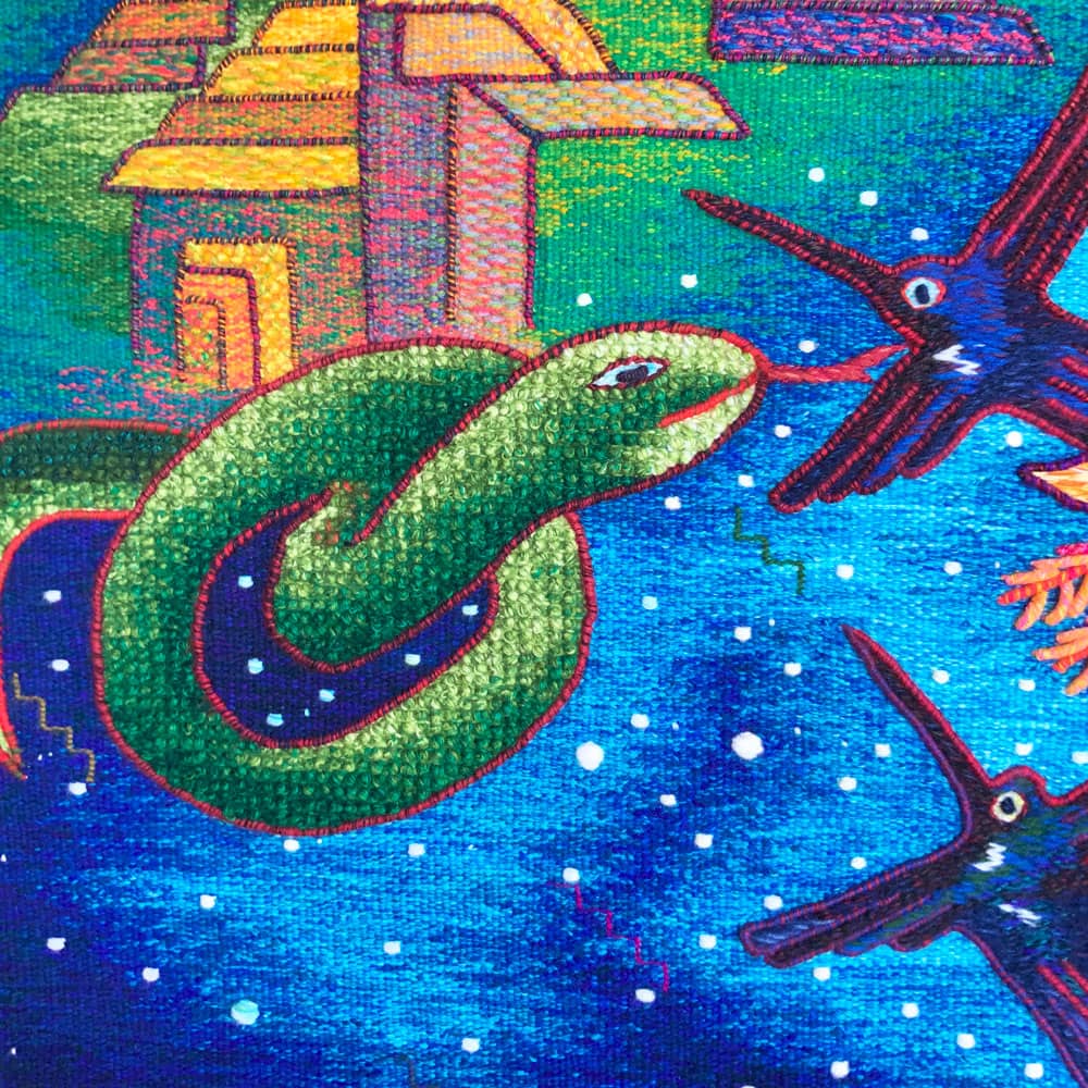 Tapestry is the name given to this vintage form of textile art. Our Peruvian tapestries have begun to gain popularity in recent years. When someone stands and looks at these pieces they become aware of the enormous amount of artistic vision and exquisite craftmanship that has gone into creating these masterpieces. Delight your home interior with our unique tapestries and allow yourself to be immersed into a whole new cosmic dimension, the Incas represented their world view of the world in these three animals: the snake, the puma, and the condor. The condor was a sacred bird for the Incas who believed that it communicated the upper world, the puma is a symbol of strength, wisdom, and intelligence. The snake represented the infinite.