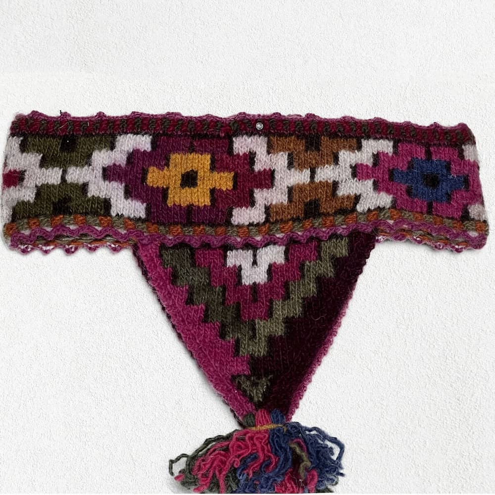 Alpaca head band, Chakana motifs spreading around.