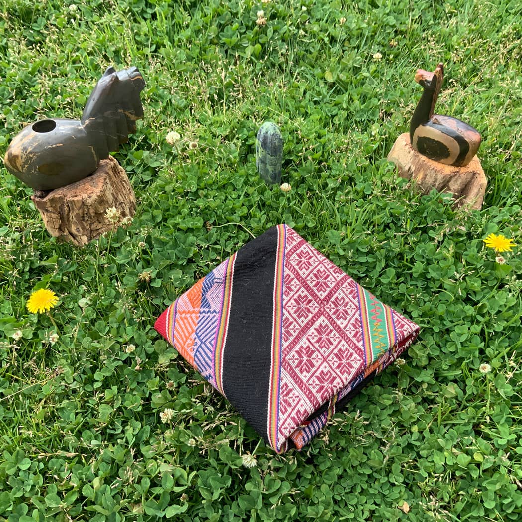 Mestana, or mesa cloth is used to contain sacred items. These ancient medicine bundles of the Andes are used to connect to Pachamama, and the Apus or mountain spirits. Each piece has been individually handcrafted from scratch. For this, they collect the wool from their own alpacas, then create the wool fibers, hand dye them with natural dyes made from plants and seeds, and finally when they turn them into a beautiful and natural wool yarn, they hand knit from intricate way these majestic pieces with which they honor their ancestors while respecting their techniques and designs, which is why their textiles are considered the closest to those of the Incas.