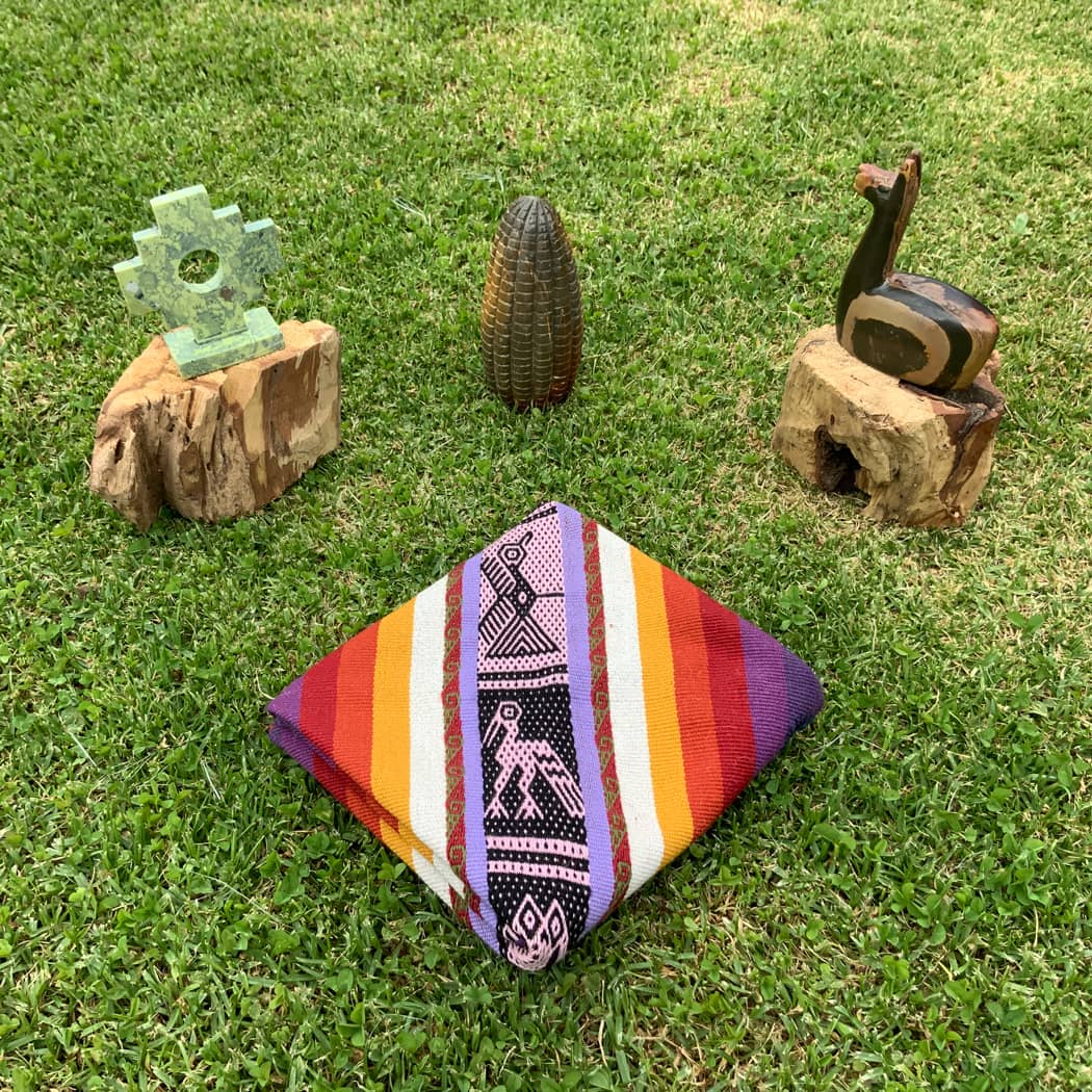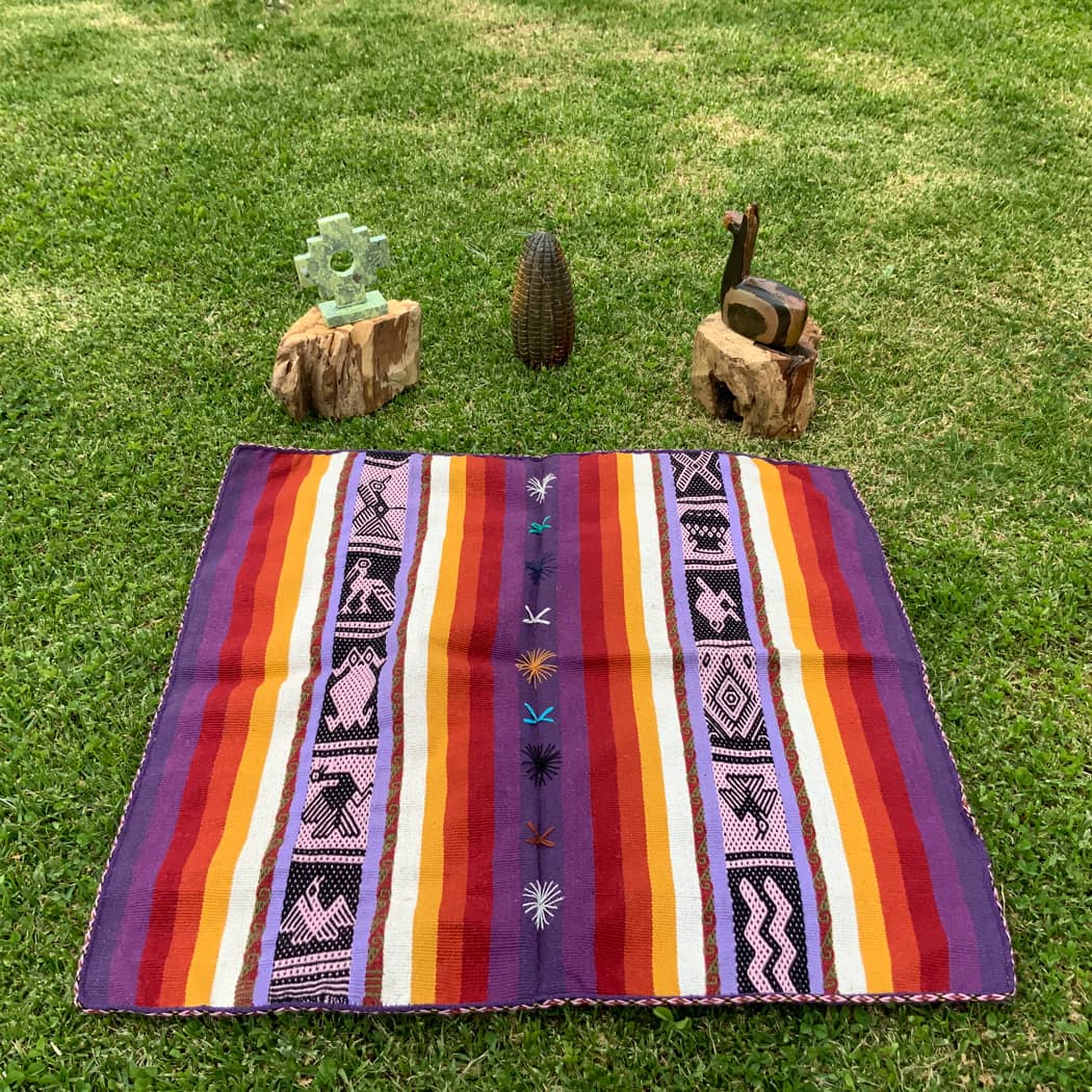 Mestana, or mesa cloth is used to contain sacred items. These ancient medicine bundles of the Andes are used to connect to Pachamama, and the Apus or mountain spirits. Each piece has been individually handcrafted from scratch. For this, they collect the wool from their own alpacas, then create the wool fibers, hand dye them with natural dyes made from plants and seeds, and finally when they turn them into a beautiful and natural wool yarn, they hand knit from intricate way these majestic pieces with which they honor their ancestors while respecting their techniques and designs, which is why their textiles are considered the closest to those of the Incas.