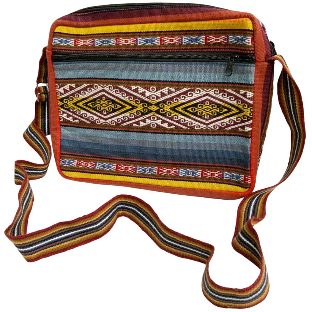 This Peruvian tote is a bag of woven stripes featuring bands of traditional motifs. The unique colors are achieved by natural dyes extracted from flowers, insects, barks, and roots. The stripes vary in width and color pattern, based on the weaver who made it, making each bag unique, just like the rainbow.